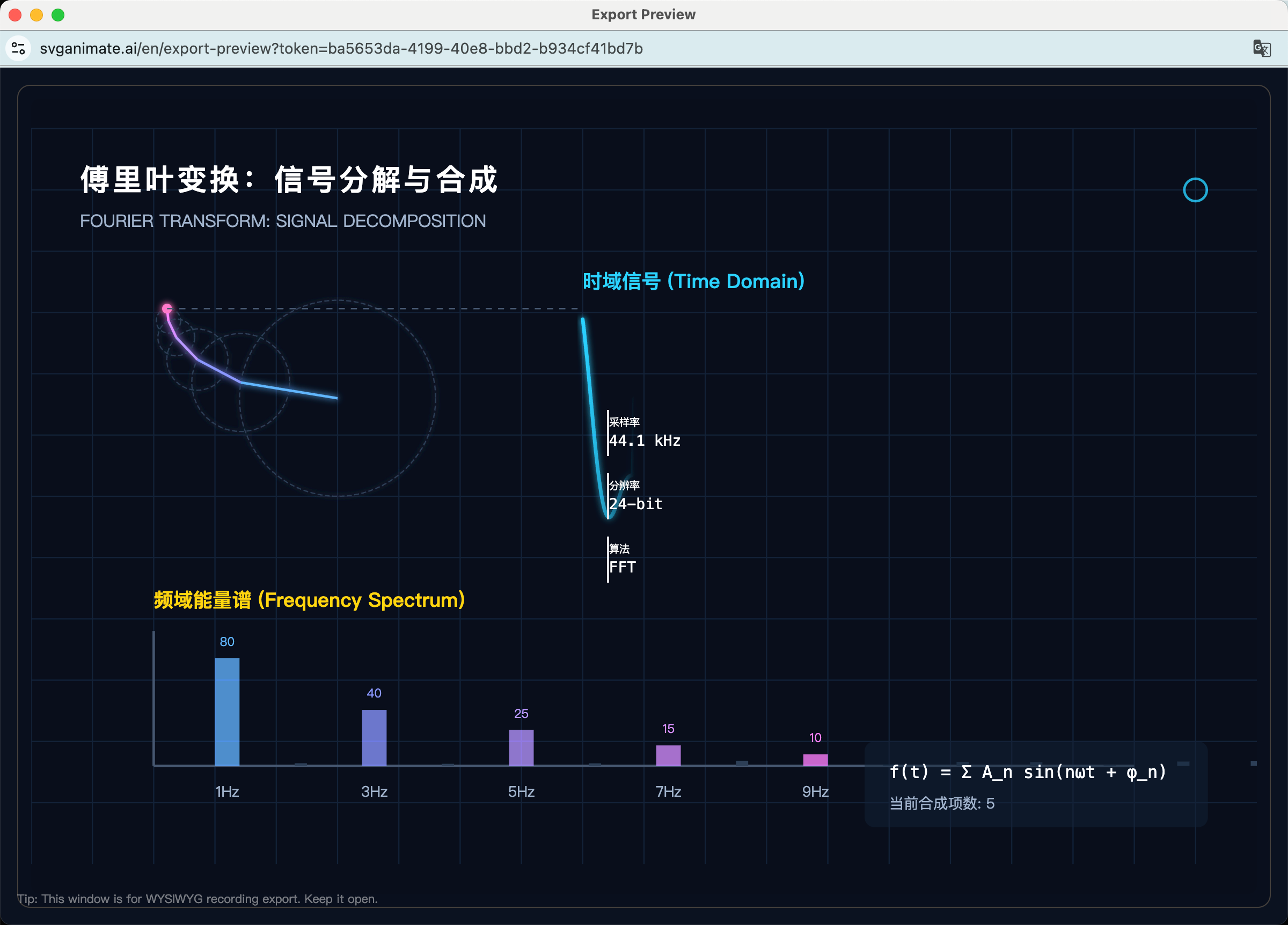 - Click "Start Recording". The browser will open two windows. One is a standalone animation playback page: